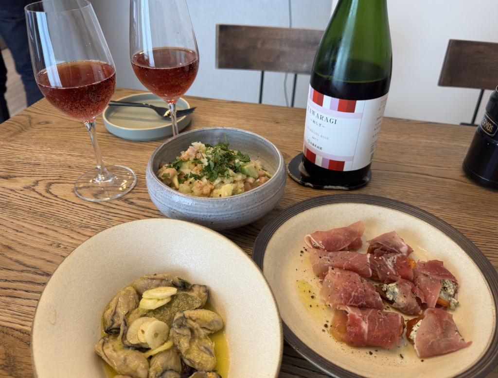 ワインはレゼルヴ・ムートン・カデ・グラーヴ(白)。 「牡蠣に合うワインを」とお店で相談して選んだ一本で、 すっきりした飲み口と花のような香りが牡蠣にぴったりでした(3,000円ほど)。